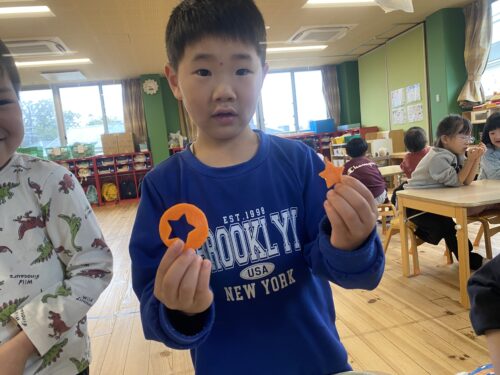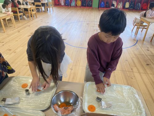 4,5歳児クラスは人参の型抜きにも挑戦しました🥕