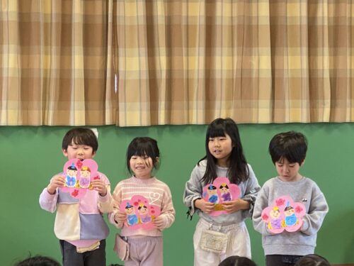 ひな人形が完成したら、みんなで「うれしいひなまつり」の歌を歌いました🎵