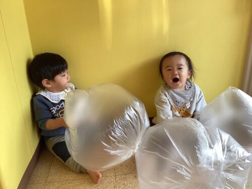 ポリ袋を膨らませたので遊んだり、新聞紙で遊んだりと様々な遊びを楽しみました☺️🤍