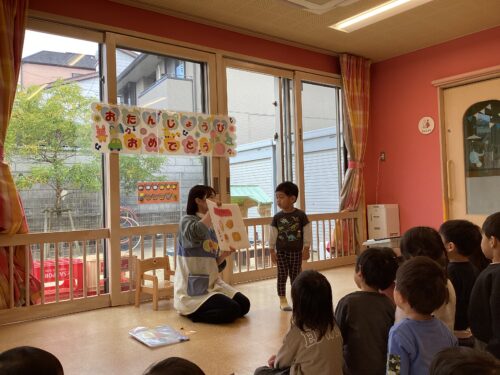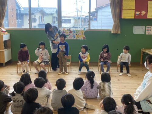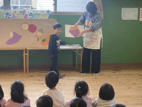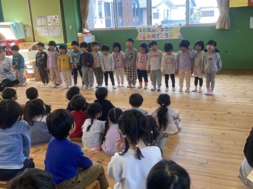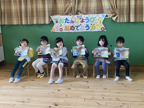にじ組(3歳児)1名、くじら組(5歳児)5名のお友だちをお祝いしました🎉