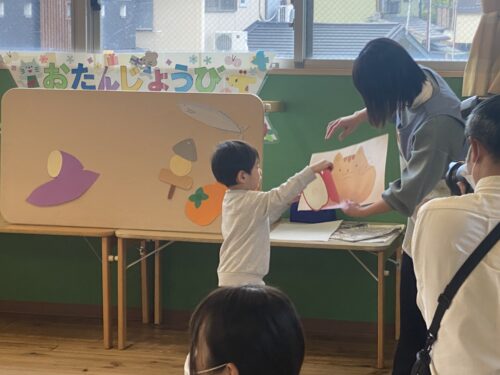 保育士からの出し物は「はらぺこリスくんー何食べた?」🐿️