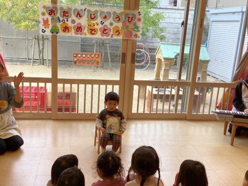 今月はあめ組(2歳児)1名のお友だちをお祝いしました🎊
