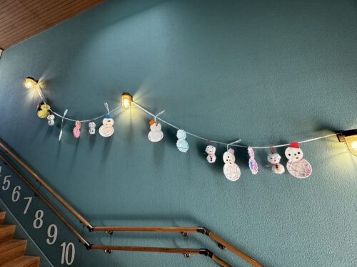 階段に飾っていますので、ぜひご覧ください☃️💕