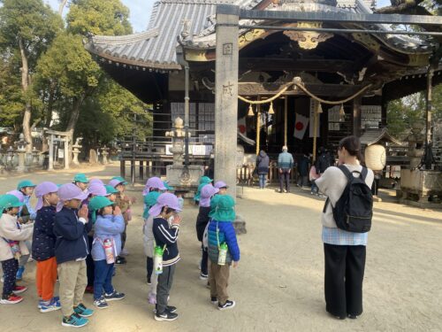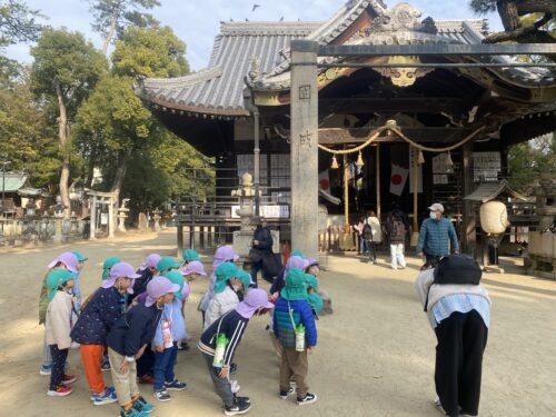 まず、朝の集まりで「二礼二拍手一礼」についてのお話を保育士から聞きました。