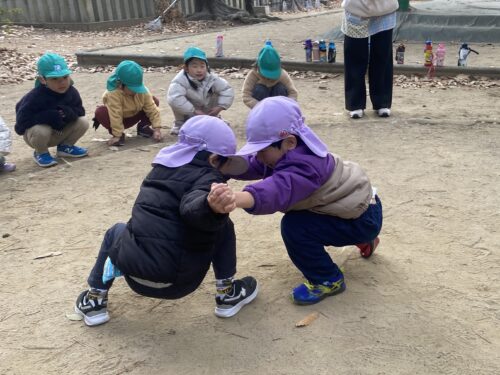 行事の練習などもありますが、戸外遊びの機会もたくさんつくりながら