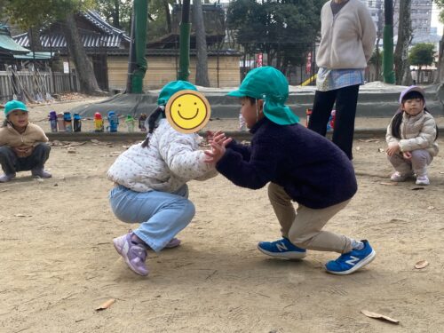 初詣のあとは神社の隣にある公園内の、子ども土俵で手押し相撲大会をしましたよ!
