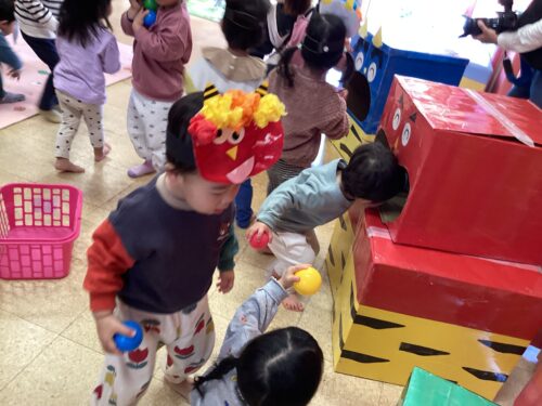 「えいっ!」や「おにはーそと!」と言いながら投げているお友達もいましたよ☺️口の中を目掛けてボールが入ると嬉しそうです🌟