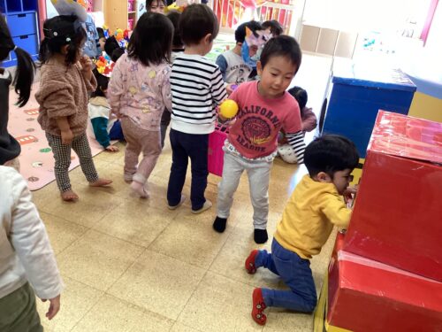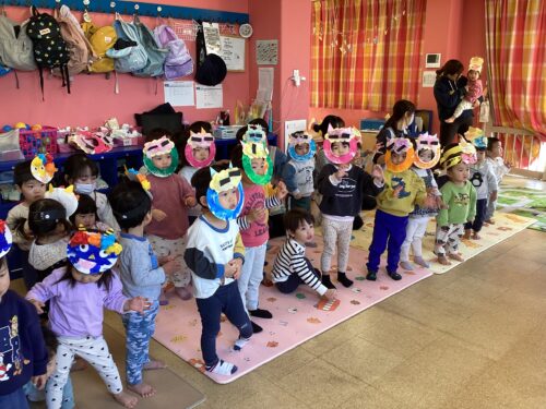 「つよいぞーつよいぞー」と上手に歌を歌いながら保育士の真似をして踊って元気いっぱいです☺️