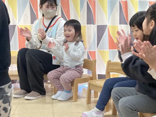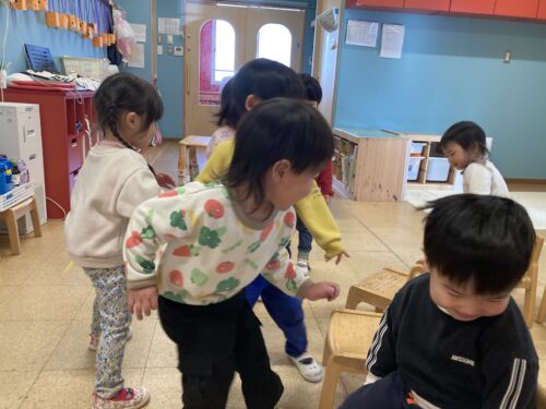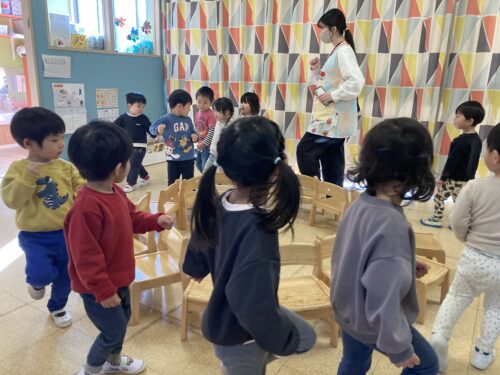 保育士の話しをよく聞き、「曲が止まったら座る」などの基本ルールや、「お友だちは押さない、椅子は動かさない」などの安全面の決まり事をしっかりと理解して参加してくれました👏✨