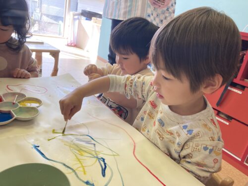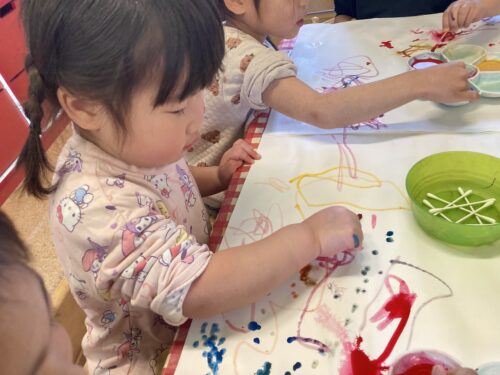 今年度最後のブログは、あめ組さんの大好きな絵の具遊びと最近ハマっているぬりえの様子をお伝えします🎨✨