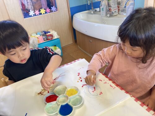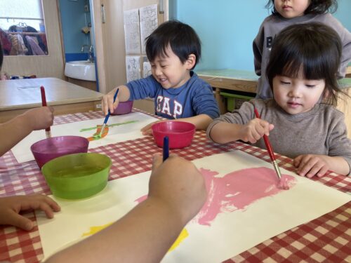 子どもたちから「また絵の具したいー!」と声があがるほど大好きな絵の具遊び🎨新クラスになってもたくさんしたいね☺️
