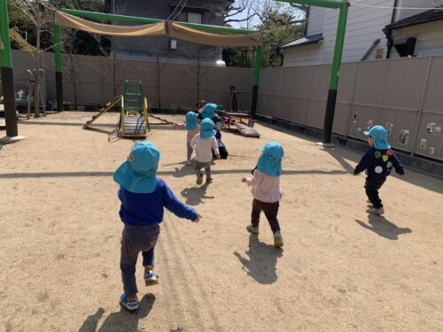 『今日はお外で追いかけっこしよう!しっぽとりはどう??』と楽しそうにお友だち同士でやりとりしています👦🏻👧🏻