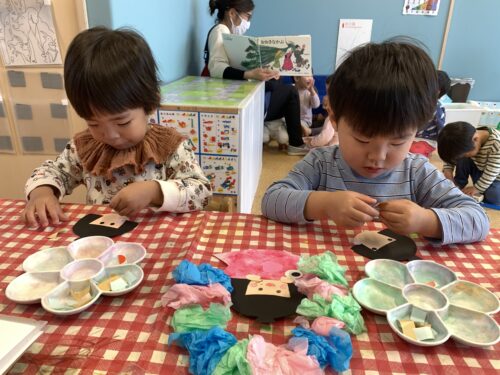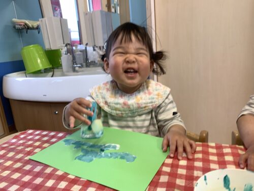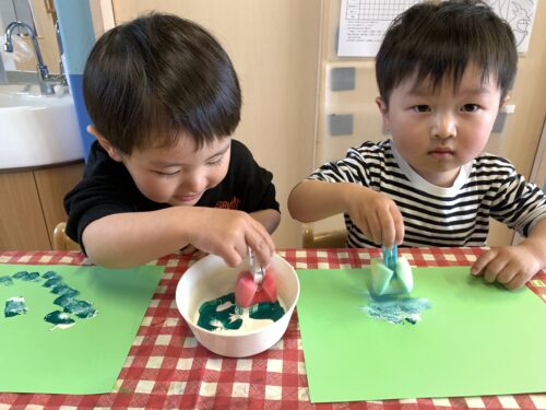 好きな色のこいのぼりを選んでスポンジでトントン色付けをしました✨