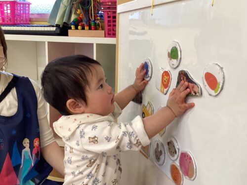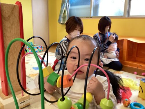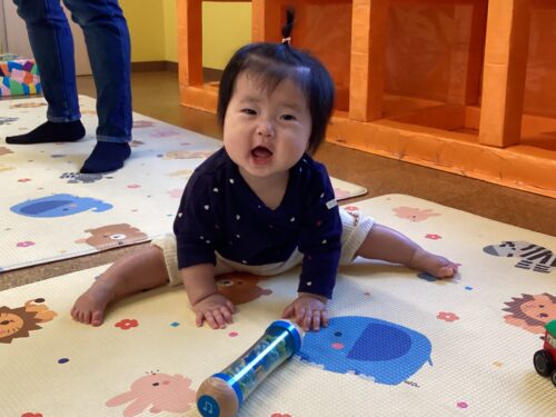興味のあるおもちゃに手を伸ばしたり、触ってみたりしながら、お部屋の散策を楽しみます♩
