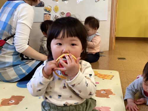 初めて保護者と離れる経験をし、初めましての保育士、初めましての場所、初めてづくしで、不安そうな姿を見せながらも、少しずつ可愛い笑顔を見せてくれるようになってきました☺️