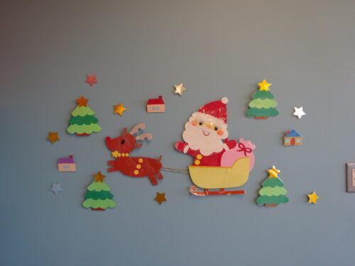 部屋にサンタクロースの壁面を貼ると、「サンタさんもう来る?」「サンタさんに何もらおうかなー」とみんな目をキラキラさせていたので、お部屋にクリスマスまで後どれくらいか目で見て分かるようにカレンダーを設置しました✨