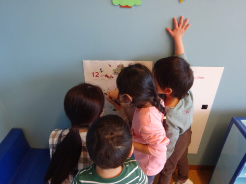 カレンダーをお友達と眺めながら、「~くんは何もらうの?」「~ちゃんは〇〇をもらうの!」と楽しそうに会話を楽しんでいます😊