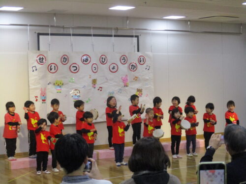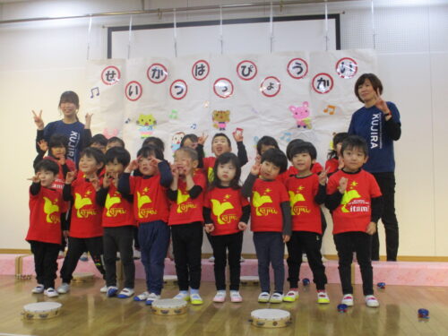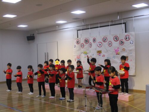 保育士をみて、リズムに合わせて叩くことを目標に練習してきたそら組の子どもたち💗