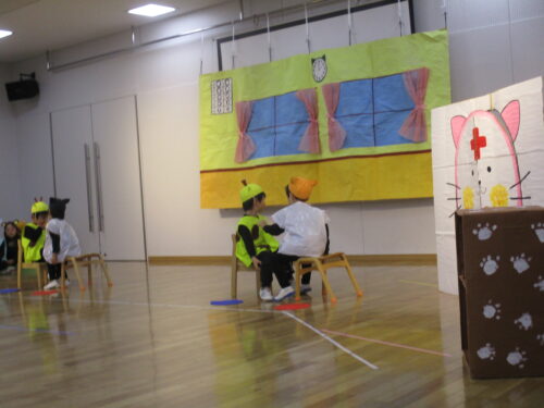 大好きな絵本のお話「ねこのおいしゃさん」を通してみんなで一緒に表現して遊ぶことを楽しんできました。