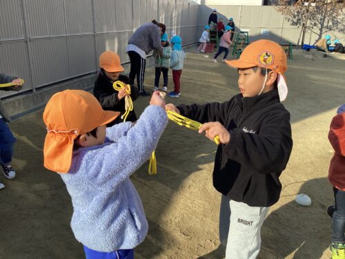 くじら組の子どもたちは自分で縄跳びを結んだり解いたりを練習しています✨