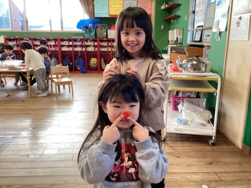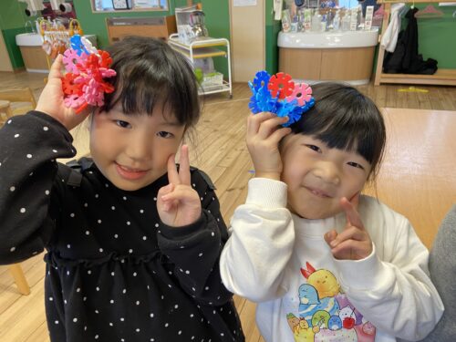 少し難しそうにしている友達に、「うさぎを作るねんで!」と結び方を教えてあげたりしている姿にほっこりしています😊
