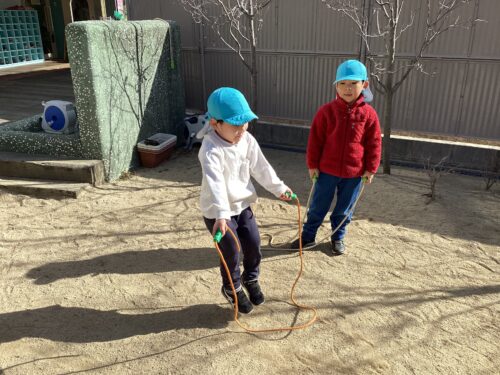 園庭では縄跳びに挑戦!