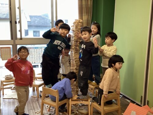 カプラをどんどん積み上げて、「先生より高くする!」と張り切っていました🎵