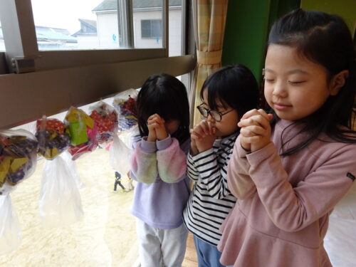 てるてる坊主を作り、遠足の日が晴れますように!とお祈りしました👏