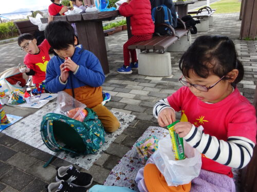 前日まで雨が降っていて、「明日の遠足お外いけるかな?」とお話していた子どもたち😢