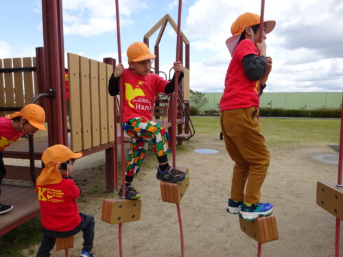 遊具でかくれんぼをしてみたり、ぐらぐら揺れる遊具に大はしゃぎ!