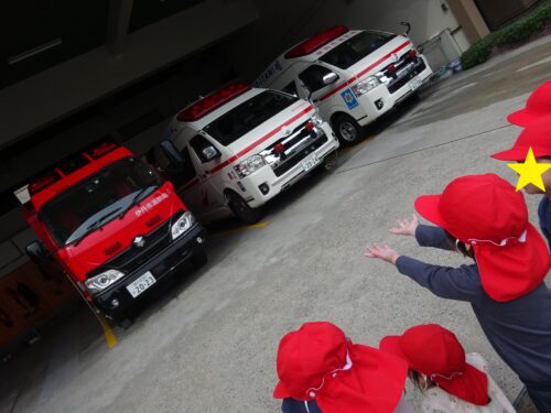 消防署に到着すると目をキラキラさせながら消防車や救急車を眺めたり、ばいばーいっ!と手を振ったりととても嬉しそうです✨