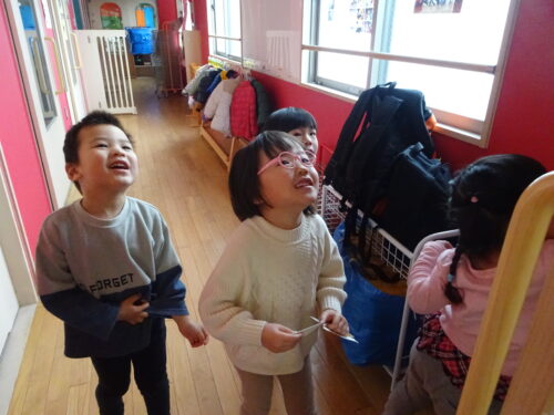 「もうすぐそらさんになるー!」とわくわくしている子どもたちの姿にほっこりしています♪