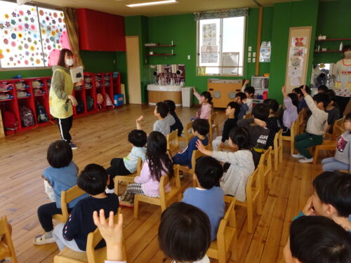 出題されると元気いっぱいに手を挙げる子どもたち。正解すると「いえ~い!!✌」と大盛り上がりでした(^^♪