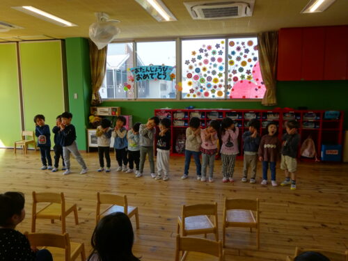 幼児クラスは3名のお友達が誕生日をむかえました。