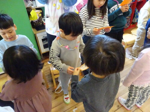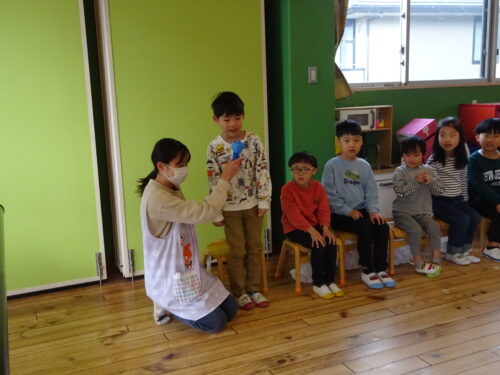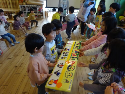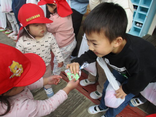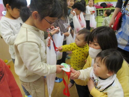 プレゼントをもらうと「見て見て!かわいい」と友だち同士で見せあい、喜んでいました😀