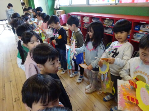 うみ組(0歳児)・だいち組(1歳児)・あめ組(2歳児)からのプレゼントは、お別れ会が始まる前にもらいました🎁