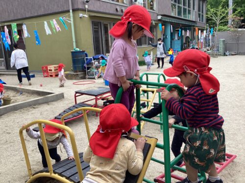園庭にたくさん出て遊具に登ったり、みんなで走ったりして楽しく身体を動かして遊んだので、これからも園庭やお部屋で好きな遊びを見つけてのびのびと遊んでいきたいと思います🎵