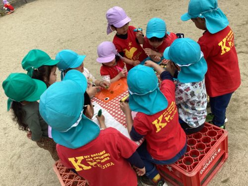 幼児クラスのお友だちがしているのを見て、にじぐみさんも興味を持ち集まってきました♪