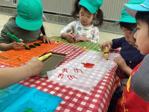 園庭に鯉のぼりを泳がすことになり、みんなで製作をしました✨