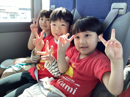 先にバスに乗っている梅ノ木くじら保育園のお友達に「おはよう!」と元気に挨拶をして