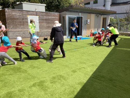 チーム対抗で楽しんで綱を引っ張り合いました!