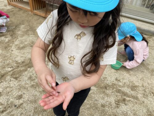 園庭に出ると、ダンゴムシやアリを探して観察したり、