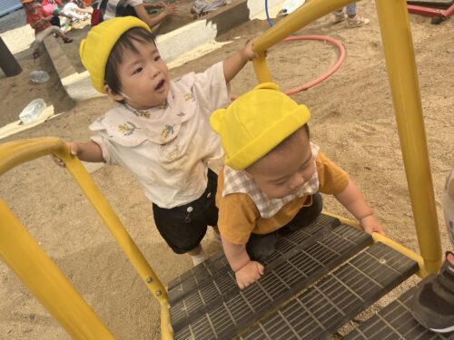 春の入園したての頃は、抱っこやマットにちょこんと座って日向ぼっこを楽しんでいたうみぐみさんでしたが、動きがずいぶんと活発になりました😌👏
