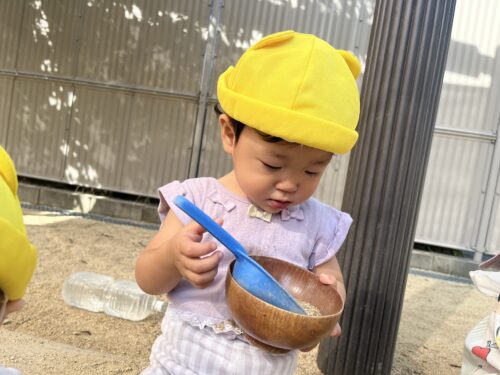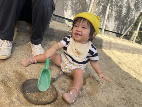 食事でスプーンが使えるようになったことで、砂をすくい集めて遊ぶことができるようになりました😆