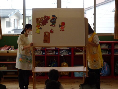 その後は保育士からの出し物「赤ずきんちゃん」のパネルシアターを見ました!