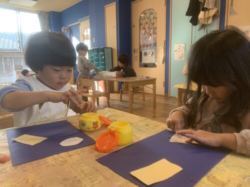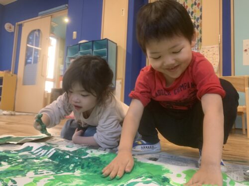 模造紙の上で色を混ぜ合わせる姿もありました😗