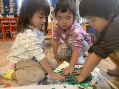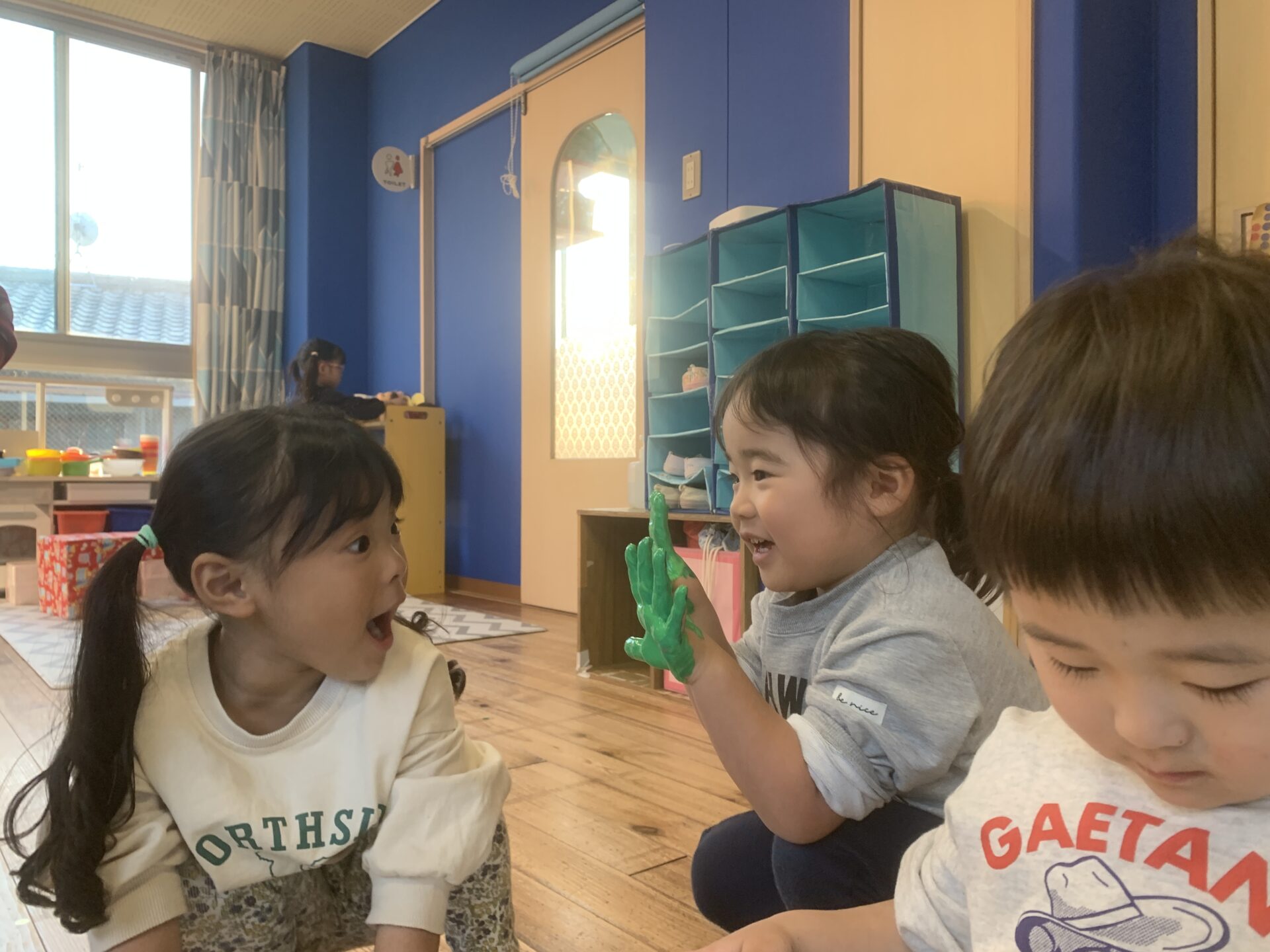 『みてみて!かっぱみたい!』と手を見せるお友だちにいい反応です…😁✨