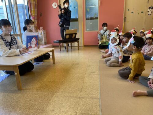 次は、『あわてんぼうのサンタクロース』の歌に合わせて、紙芝居を見ました。