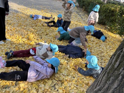 実は・・・・学校に到着したときから、ドサッと落ちたイチョウの葉っぱに