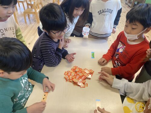 目、鼻、口などのパーツに分かれたカードを一枚ずつ引き、顔が出来上がってくると、